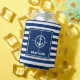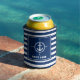 Your Boat Name Compass Anchor Blue Striped Can Cooler