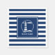 Your Personalized Boat Name or Text with a Nautical Classic Lighthouse on Chic Navy Blue Striped Napkins.