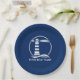 Your Boat Name or Text Lighthouse Navy Blue Paper Plate