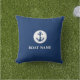 Your Boat Name Rope & Anchor White and Navy Blue Throw Pillow Cushion.