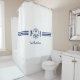 Your Boat Name Seahorse Anchor White with Navy Blue Shower Curtain