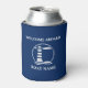 Personalized Welcome Aboard Your Boat Name Classic Lighthouse Customizable Navy Blue Can Cooler.