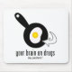 This is your brain. *points to egg*. This is your brain on drugs. *cracks the egg and unceremoniously tosses it into a preheated pan, causing it to sizzle and cook immediately*. Any questions?