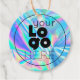 Add a black or dark business logo to this simulated holographic blue iridescent rainbow faux foil hangtag easily with this simple template. Select from white cotton twine, brown natural jute twine, or none. This template also allows for custom printed text of your choice on the back of the item.