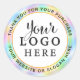 Create unique iridescent holographic business stickers personalized with your company logo, website and thank you message or with another text.