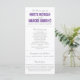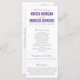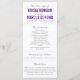 Wedding Program template includes a bridal party of 4 Bridesmaids/Groomsmen, Jr. Bridesmaid/Jr. Groomsman, Ring Bearer, and Flower Girl in grey and purple.