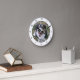 Personalize with your own dog's photograph on this custom pet wall clock and customize with their name at the bottom. A beautiful personalized gift for a dog or cat owner to immortalize their love. Bordered in white with black numbers.