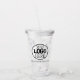 This custom drink tumbler with straw features a sample company or business logo placed in the centre over a white background. A sample slogan or additional text is printed below. You can personalize the tumbler to include your own custom logo or image and text of your choice.