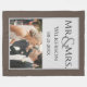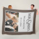 This blanket features a brown coloured background border. A sample wedding photograph is featured in the bottom portion which you can personalize to include your own custom photo or image. A sample name and personalized message is printed above. It is a perfect wedding gift for a newlywed couple. You can add their "Mr." and "Mrs." titles with their last name and wedding date.