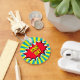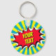 This comic-style design with a colourful pop bubble and the customizable text option on a key ring is a great way to make keys more visible.
