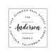 This stamp is ideal for any family looking for a personal touch for their mailing. This design features your family name in a hand-lettered script with "The" and "Family" above and below. Your return address is placed in a circle around your family name. Click the "personalize" button and type your own name and return address into the text boxes that appear.