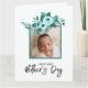 Mothers first Mother's Day greeting card features watercolor Roses eucalyptus greenery and your favorite photo.