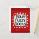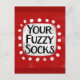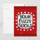 "Your Fuzzy Socks" is a fun text design with a white accent shape surrounded by white whimsical textured dots.