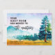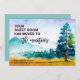 With global warming heating up the lower altitudes of the country, many folks are heading for the hills... and mountains. If your new home is in a mountain area, here is a lovely new address card (with envelope) to announce your move to the folks down below. The watercolor mountain scene on this card is painted in shades of teal, aquamarine, light blue and goldenrod. The (non-customizable) text on front of the card reads "Your guest room has moved to the mountains" and is part of the design. The names and address on the bottom, however, can be easily revised on the Personalization template. All of the placeholder text on back of the card can also be revised with your own details on the template.