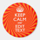 Your personalized Keep Calm saying on a vibrant orange and red swirl decor. A personalized Keep Calm style saying on a one of a kind gift. Humourous or whimsical try on your creative words on two editable lines of text. Remember to use CAPITAL letters for best results.