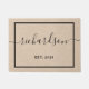 This simple and stylish doormat features your last name in trendy handwritten script, along with the year your family was established and a modern black geometric frame on a soft, beige kraft look background.