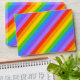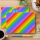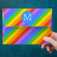A pattern of bright and colourful rainbow stripes with a monogram letter on a blue circle. The monogram initial can be personalized.