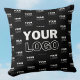 Your Logo & Background Repeating Logo | Black Throw Pillow