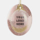 Your Business Logo Pink Glitter Drips Trendy Feminine Holidays Christmas Ceramic Ornament. A luxury holiday decoration for beauty hair salon, eyelashes extension experts, makeup artists, beauty guru, fashion boutique and any kind of female business.