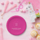 Your Logo Text Pink Solid Colour Round Personalize Paper Plate