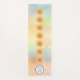 This personalized yoga mat is decorated with seven yellow watercolor sunflowers on a colourful background.