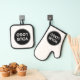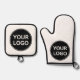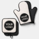 Custom oven mitt and pan holder for businesses and companies. Customize your company logo and text easily. Simple black and white.