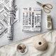 Create a very extremely personalized wrapping paper. Your custom name appears all over this gift wrap in a collage of different fonts and lettering styles. Black lettering is set against a white background.