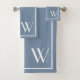 Add your /his monogram to this simple towel set in faded denim colour (778fa8) . It is a grayish blue colour . From the store of lumirala . Personalized gifts are always a good idea !