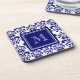 Your Monogram, Navy Blue Damask Pattern 2 Coaster