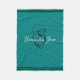 Fancy script monogram fleece blanket in teal colour with white and black typography. Just choose size and add a name or text using the "personalize this template" feature.