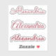 Decorate your laptop, water bottle, case, or other items with three custom stickers featuring your name in 3 different burgundy red handwritten script fonts. Add your name in the sidebar. Select "matte white" in the sidebar to make the transparent background around your name white.