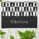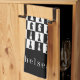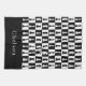 Kitchen towel featuring a black and white chess game figures chequered pattern and personalized name print.