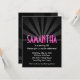 Bold and striking fun, contemporary black and white with hot pink lights party invitations for any birthday year. Your Name in Lights Birthday Party Invitations. Black with spotlight searchlight and marquee text design. Customize online with your event details. Makes a great sweet sixteen invite or any age!