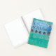 This is a beautifully designed 8.5 x 11 inch notebook you can personalize with your name. It is decorated front and back with an abstract watercolour design inspired by flowers and fields. It has a bright green and blue shaded background with an abstract design is of circles, blobs, dots and ovals in muted pale ochre. The artwork is original, and only available from The Art of Being Beth.