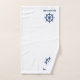 A beautiful personalized bath towel set with your family name or boat name. Featuring a custom designed nautical ship wheel - helm in navy blue on white or easily change the background colour to match your current decor. The perfect addition to your home, beach house or vacation house.