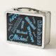 Your name pattern monogram blue red black colour metal lunch box