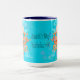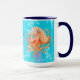 Cute pale tangerine octopus with bright blue eye and daisies for suckers, in a turquoise blue sea with colourful bubbles. Original digital painting. Personalized the mug the a name. Amanda’s mug tentacles off! Cute funny gift for everyone who loves the sea.