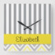 Your Name - Zigzag Pattern, Chevron - Yellow Grey Square Wall Clock