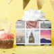 Wrap your gifts in the most personal way with this custom gift wrap. Easily replace the example photos with photos of your own. There are a minimum of 51 different photo squares (up to 69 if you replace the coloured squares with photos) - more than enough to create beautiful paper. The grey squares can be changed to whatever colour you choose by clicking the 'Customize' button, then scroll to the bottom and select a new colour from the 'Background Colour' selection tool. Choose a photo a week and span your whole year, choose many photos from one special occasion, or get creative with your Instagram photos! The example paper also has templates for custom wording to place inside the solid colour squares - the sample shows different custom wedding or engagement messages, but you could personalize with monograms, first names, love notes, baby birth details - the ideas are endless. Just use the easy, provided templates!