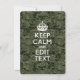 Your personalized Keep Calm saying on a green woodland style digital camouflage decor. A personalized Keep Calm style saying on a one of a kind gift. Humourous or whimsical try on your creative words on two editable lines of text. Remember to use CAPITAL letters for best results.