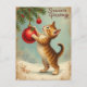Share a moment of holiday magic with this sweet postcard featuring a playful orange tabby kitten reaching up to touch a bright red ornament hanging from a snowy pine branch. The soft winter landscape and vintage-style edges evoke a sense of nostalgia, while the kitten’s curious pose adds warmth and charm. The front reads “Season’s Greetings” in a decorative font, and the reverse includes a space for your own verse or message — perfect for personalizing with love, laughter, or a thoughtful note. Part of the Paws Charming Paws, Wings, and Winter Things collection, celebrating the joy animals bring to the season. A portion of proceeds supports animal charities, making every card a gift that gives back.