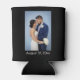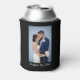 Your favourite photo and two lines of custom text highlight this personalized wedding beer can cooler.