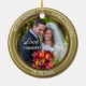 An elegant Christmas ornament featuring your own custom photo framed by a stylish vintage green gold design. Beautiful for a first Christmas together or other special extra festive Holiday celebration. Although created in 2020 in relationship to the pandemic, you can customize the theme.