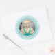 Your Photo Simple Stripes Pattern Aqua/White Classic Round Sticker