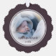 Perfect for grandparents, this Christmas ornament features your own photo with personalized name and year and a dusty plum accent trim. This ornament includes a hazy effect around the edges of the photo and works with a variety of coloured backgrounds, where the subject of your photo is just slightly above centre, with a good amount of space between the subject and the edge of your photo; the closer your subject is to the edge of your photo, the more it will fill or over-fill the photo area of the ornament. And you can customize this ornament right on the product page!