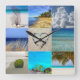 Your Photos Collage Template Clock. Upload up to nine of your photos into this collage template. This design is perfect for vacation or family photos. Not every photo needs to be changed. Each photo will automatically be cropped to size in a square shape.