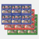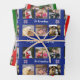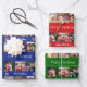 Personalize with six photos and your custom text. The photos appear on all three sheets, so you just need six of your favourites. They will appear as squares: rectangular images will be cropped to fit. The Greeting and Name can be personalized separately on each sheet. One sheet is deep blue, one is red and one is dark christmas green. All are decorated with stylized poinsettia flowers.