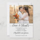 Wedding Thank You card featuring 4 of your own favourite wedding photos and optional elegant stylized script texts. The background is light grey. (also available in white)