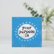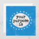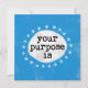 Bold text reading "your purpose is" is centred against a blue background. The black text sits on a white circle with white stars around it, providing a playful contrast against the colourful backdrop.