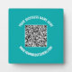 Custom Font and Colours - Design Your Own Personalized Plaques with QR Code Scan Info and Name Website or Custom Text Professional Design Business Promotional or Modern Personal Desk Accessories / Desk Signs Gift - Add Your QR Code - Image - Photo or Logo / Name - Company / Website or E-mail or Phone - Contact Information / Address / More - Resize and Move or Remove / Add Elements - Image / Text with Customization Tool. Choose / Add Your Favourite Background and Text Colours / Fonts / Size ! Please see my others projects / designs. You can also transfer this designs to more than 1000 Zazzle products. Please use your logo / QR code - image that does not infringe anyone's Copyright ! Good Luck - Be Happy :) by MIGNED